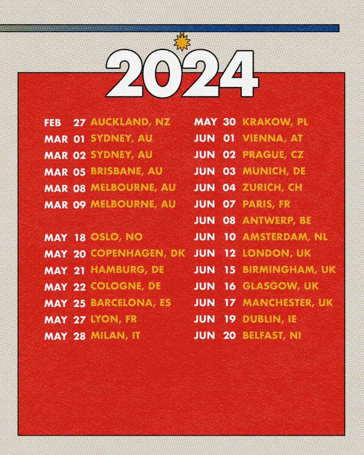 The newly announced leg sees the band performing for the FIRST TIME EVER in New Zealand and Australia in February/March 2024.